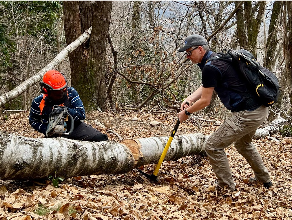 Wie immer im Frühling, gibt es einiges zu tun. Im teilweise stürmischen Winter fällt nicht nur Schnee, sondern es fallen auch immer abgestorbene Bäume auf die Trails. Diese schneiden oder sägen wir weg, entfernen Steine, Äste von den Trails. Bei manchen Trails müssen wir sogar das Laub mit dem Laubbläser entfernen. Abgerutschte Trails werden flott gemacht, hin und wieder auch ein alter Weg saniert, so dass man ihn mit dem Bike befahren kann. Natürlich wird auch der hoteleigene Skills Park im Hotel Grappoli wieder auf Vordermann gebracht.
